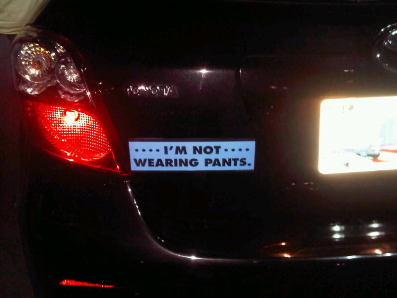 Yep, Scotty and Amanda think they are funny, but they are messing with FIRE I tell you FIRE. We are on a short jaunt to see Stephanie play a game and after we stopped in Effingham (Indian for pork no one likes apparently) Amanda and Scott did something to the back of my car.  It was only 2 full hours later that I discovered what it was.  That’s right, my caring and devoted family put a magnetic bumper sticker on the back of my car telling people I was not wearing any pants.  I was mind you…..I am just thankful I wasn’t driving in my clerical collar.