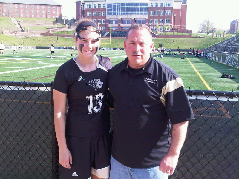 Okay, it is not the best picture, but had I not traded my (better) phone to Steph it would have been better. But the picture is a significant moment for me. The field is Lindenwood’s Hunter Field (their main stadium field) and Steph is out there just after taking the draw. And, it is the first time I have ever watched Steph play as a college player.
