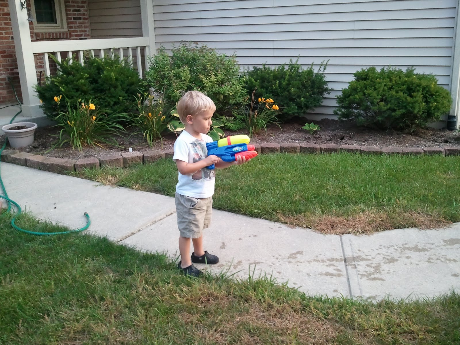 As things get weirder and weirder here in the United States, I made the decision to beef up the security here at the Tirman Compound. A man’s home is his castle as they say, yet my neighborhood association specifically denied my request for the construction of a moat. I had no choice, since I am not capable of staying awake 24/7 to guard the yard, I made the decision to arm my children. And once again, not the neighborhood association, but this time the police have these things called “laws” which in other places they seem unwilling to follow, but here I had to just give Ben a squirt gun.