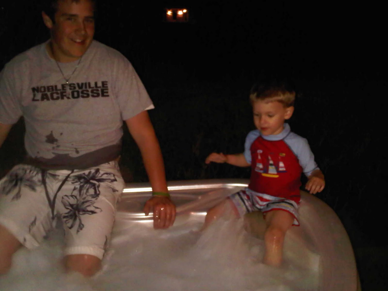 Sure it is dark, but tonight (my to Stephanie’s chagrin…she wanted to use it when she was home but it was not ready) the boys took the first dip in what Ben identifies as the “hot tub pool.” No, it’s not the hot tub. Nor is it the spa or hot pool. This, like most things in our home, have a “Ben definition,” and this is the Hot Tub Pool.