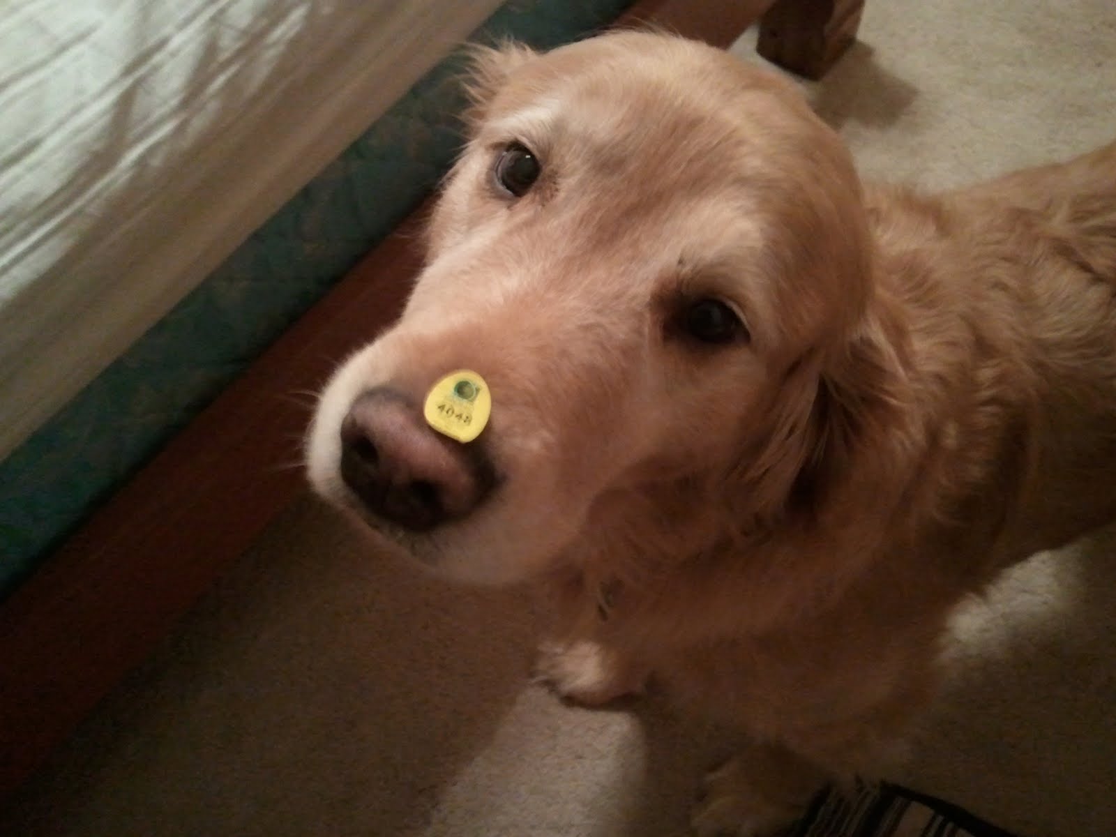 But the dog is asleep once again. He fascinates me. How he can sleep so much I will never know. He fell asleep when we were talking to them on the computer, and when I put this sticker on his nose he woke up for a little bit. Oh the life of a show dog, and a stud show dog at that….sleep, eat, sleep, maybe get studded out and sleep. If that isn’t the perfect life, then what is?